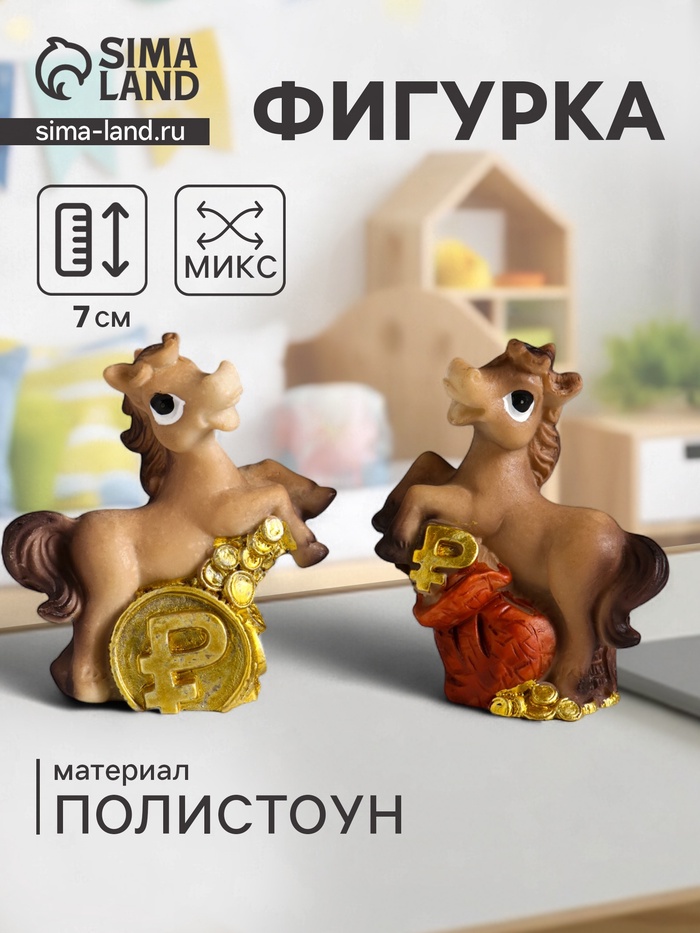 Фигурка полистоун «Лошадка с монетой - рубль», 6.5×2.6×7 см