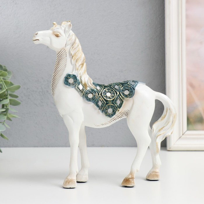Фигура полистоун «Императорский конь, белый с зеркалами», 19×5.5×21.5 см