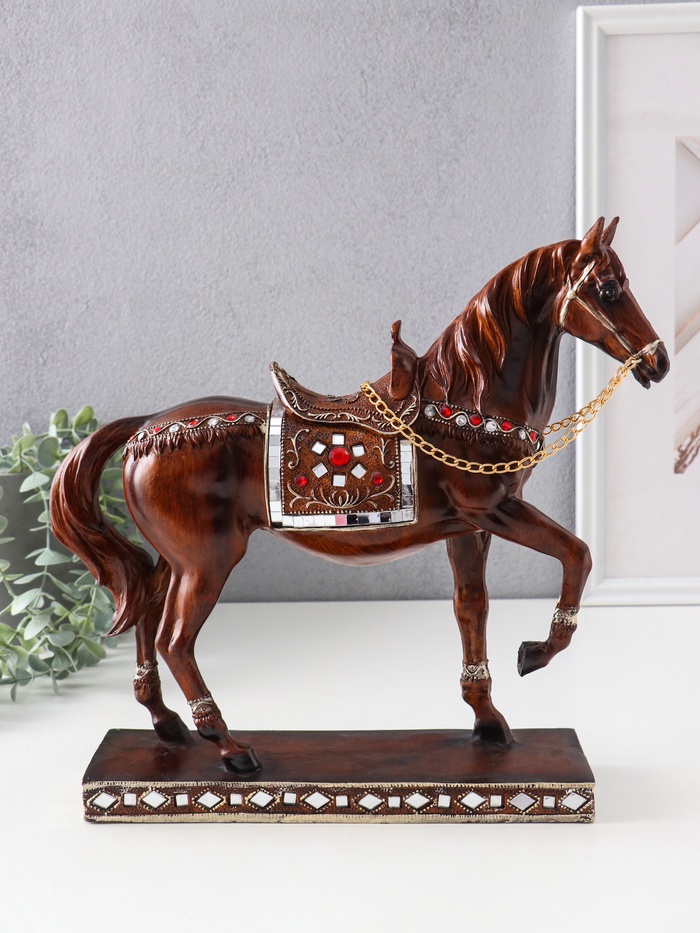 Фигурка полистоун «Конь с седлом с рубинами - аллюр», под дерево, 29.5×7.5×29.5 см