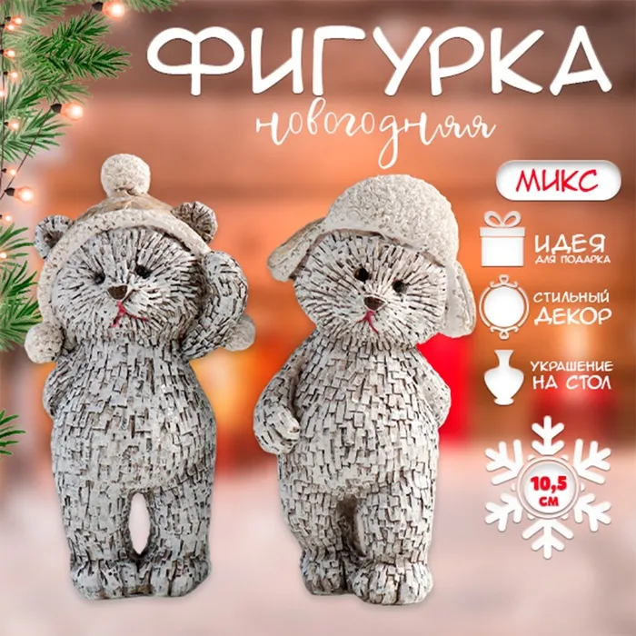 Фигурка полистоун «Мишка в шапке-ушанке, стоит», 4.5×4×10.5 см, серый, МИКС