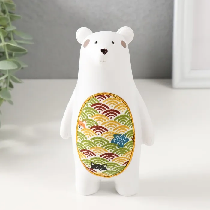 Фигурка полистоун «Белый мишка с текстилем на животе», 8×5.5×14.3 см