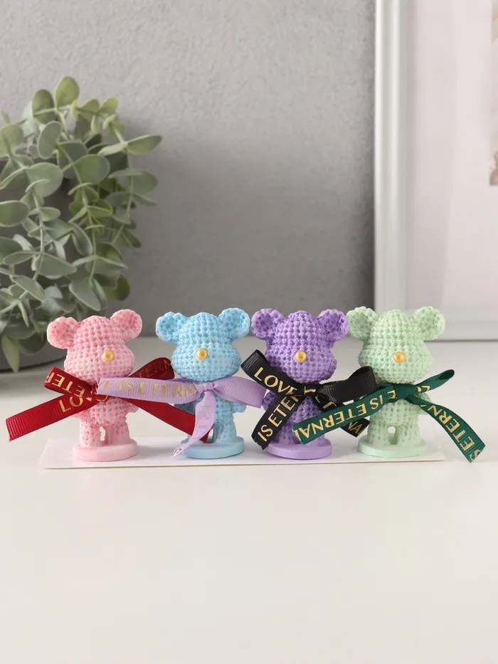 Набор фигурок полистоун «Вязаный мишка с золотым носиком», 4 шт., 3×4.2×6.3 см