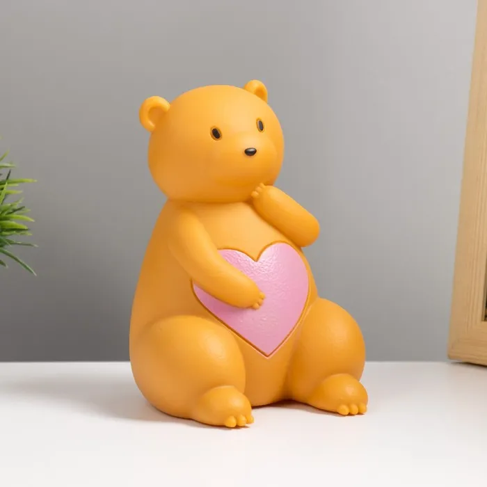 Фигурка светящаяся RISALUX «Влюбленный мишка», LED-ночник, 3×LR44, жёлтый, 10×9×12.5 см