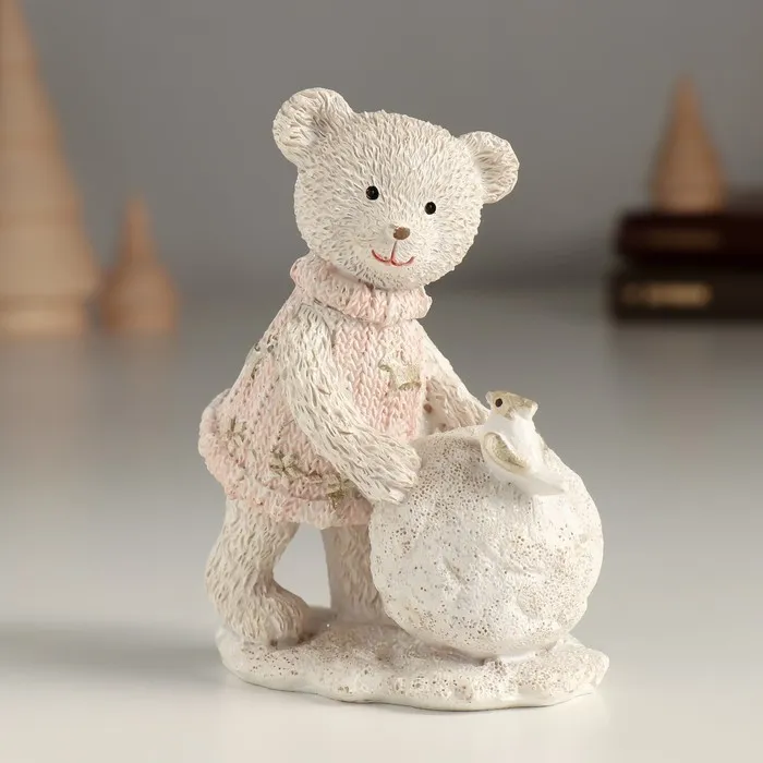 Фигурка полистоун «Мишка с птицей на большом снежке», 7.5×5.5×10.5 см
