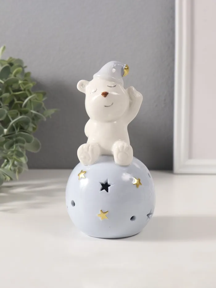 Сувенир керамика свет "Медвежонок в голубом колпаке на шаре со звёздами" 8х8х15 см