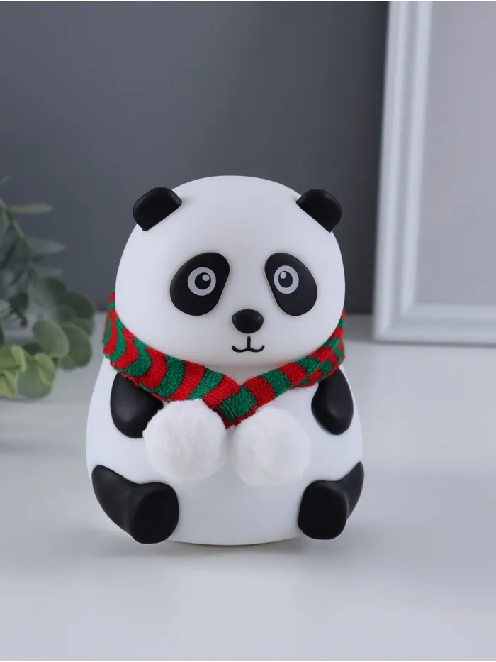 Фигурка светящаяся RISALUX «Панда в шарфе», 2 Вт, LED-ночник антистресс, RGB, USB, 10.5×10×13.5 см