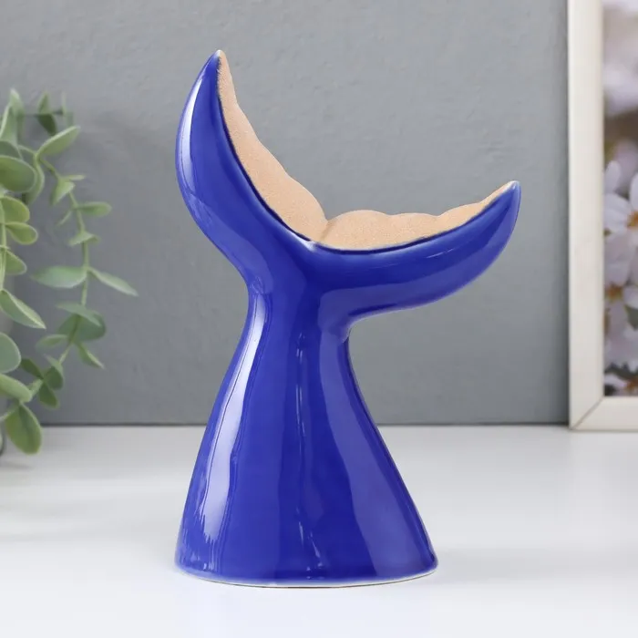 Сувенир керамика "Хвост кита" песочно-синий 11,4х6х17,3 см