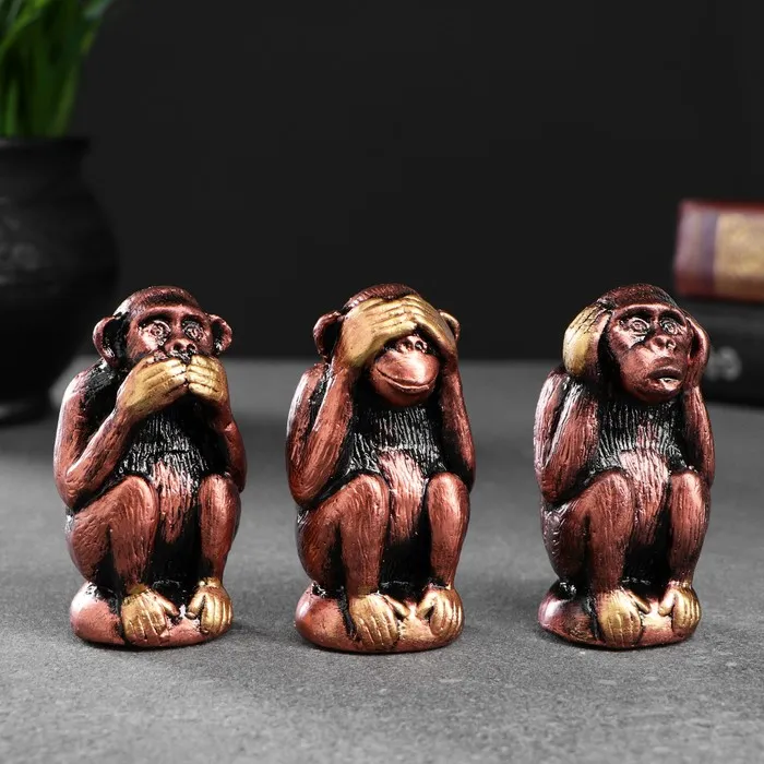 Набор фигурок гипс «Три мудрых обезьяны», под бронзу, 6.5×3 см