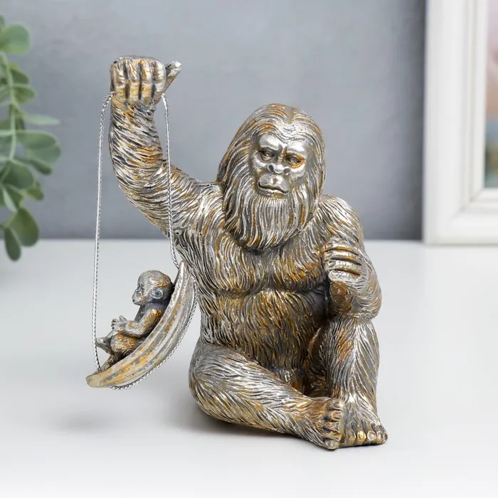 Фигурка полистоун «Орангутанг качает малыша в колыбельке», под золото, 14×9×13 см