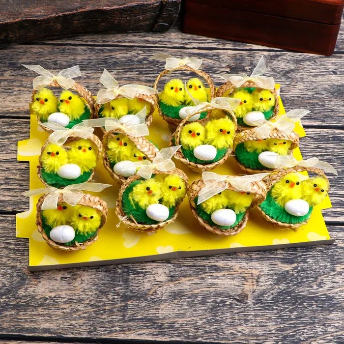 Фигурка пасхальная «Цыплята в корзинке с яичком», набор 12 шт., 5×5×5 см