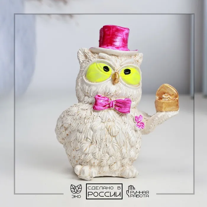 Фигурка гипс «Филин с кольцом», бежевая, 8.5×5×7 см