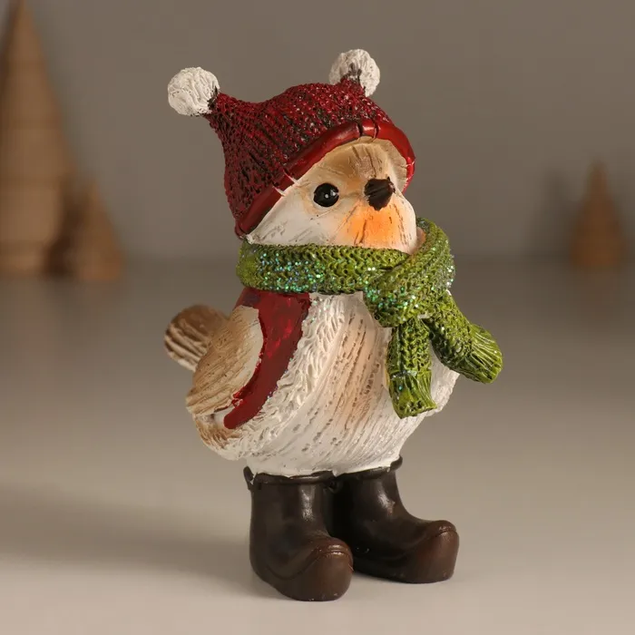 Фигурка полистоун «Птичка в жилетке, вязаной шапке с помпонами», 6×10.5×12 см