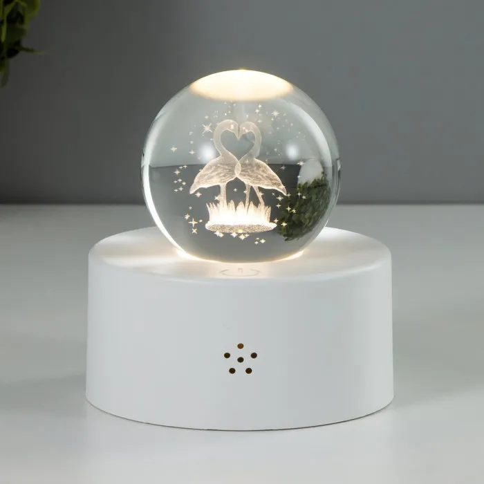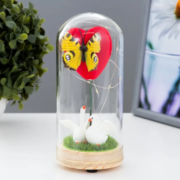 Фигурка световая в колбе RISALUX «Бабочка и лебеди», LED-ночник, от батареек LR44, 8×8×19 см