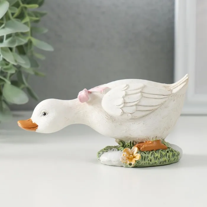 Фигурка полистоун «Гусёнок с розовым бантом на полянке», 12×5.5×5.5 см