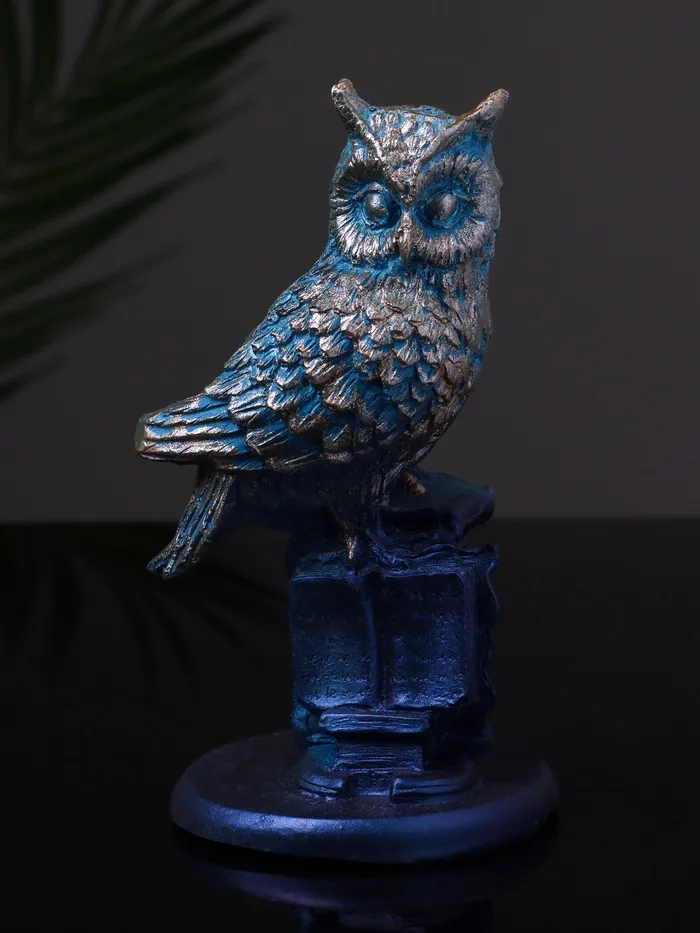 Фигурка гипс «Филин на пьедестале», 7×6×13 см, серо-голубая