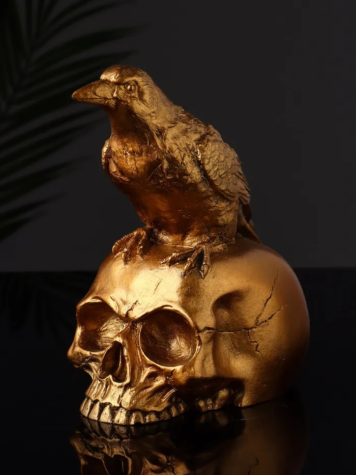 Фигурка гипс «Ворон на черепе», 17×15×15 см, под бронзу