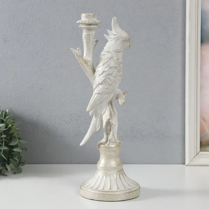 Подсвечник полистоун «Белый попугай на ветке», под металл, 12.4×12.2×36 см