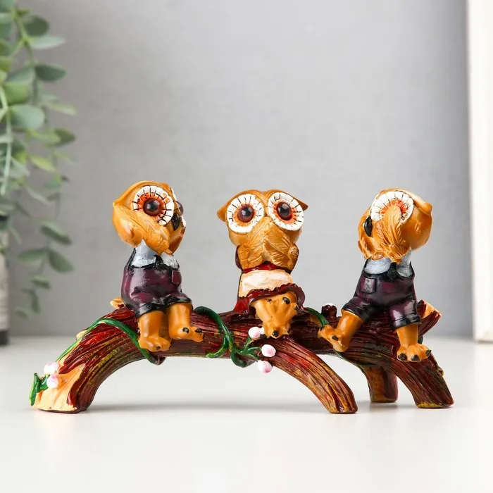 Фигурка полистоун «Три филина на ветви», 18.6×7×10 см