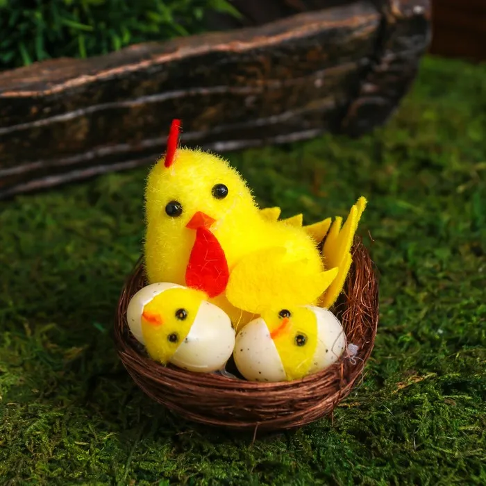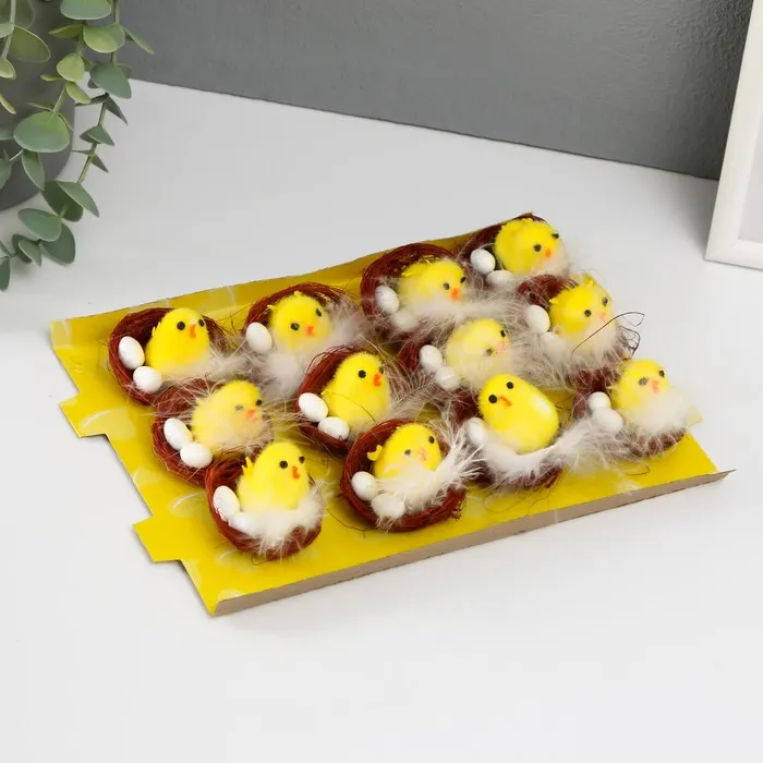 Фигурка пасхальная «Цыплёнок в гнёздышке с яичками», набор 12 шт., 4×5×5 см