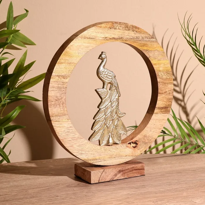 Сувенир интерьерный в деревянном кольце «Павлин», 30×8×33 см