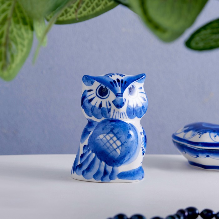 Сувенир гжель «Сова Софа», бело-синий,керамика, 8 см,