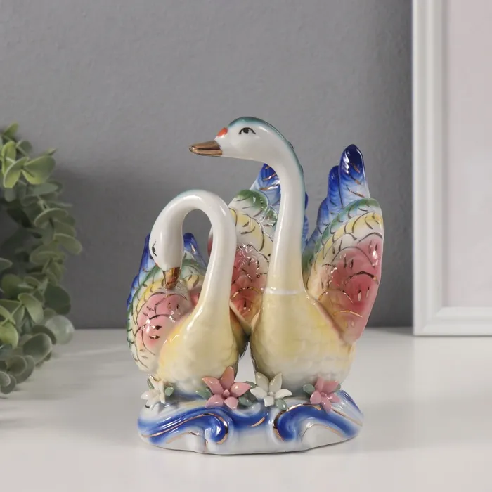 Сувенир керамика "Лебеди в заводи с цветами" цветные