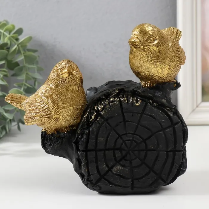 Фигурка полистоун «Две золотые птички на бревнышке», 18×9×17 см