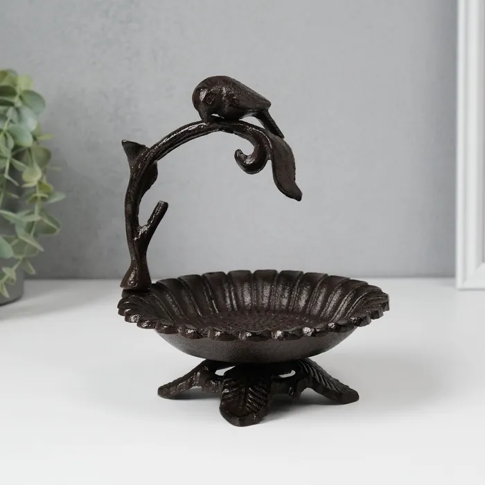 Фигурка-подставка для мелочей «Птичка на ветке над цветком», чугун, 17×15×13.5 см
