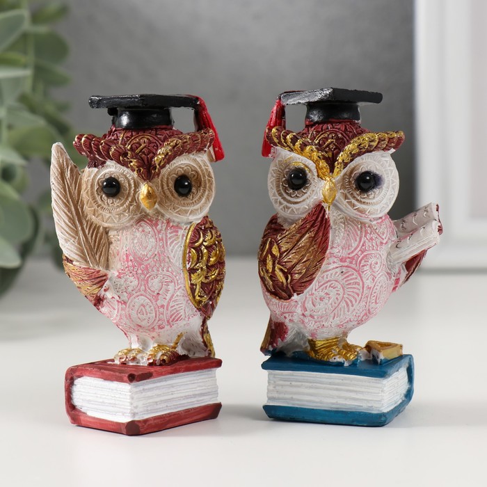 Сувенир полистоун "Ученый красный филин на книге" МИКС 3,5х4,5х8,5 см