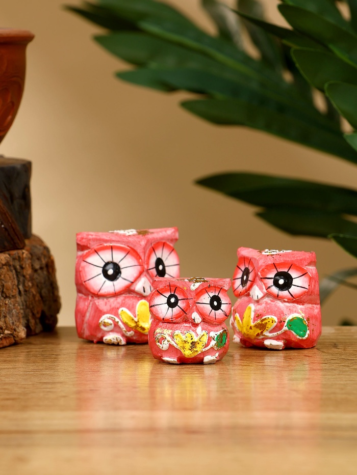 Набор сувенирный "Совята" дерево H 4, 3, 2 см, цв. розовый