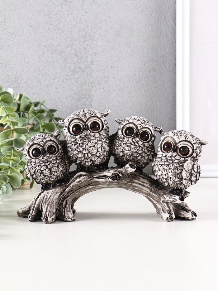 Фигурка полистоун «Четыре маленьких совёнка с большими глазами на ветке», 13×22×7 см