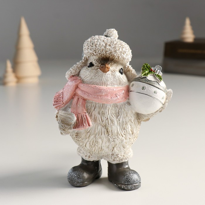 Фигурка полистоун «Воробышек в шапке-ушанке с новогодним шариком», 8.5×13×13 см