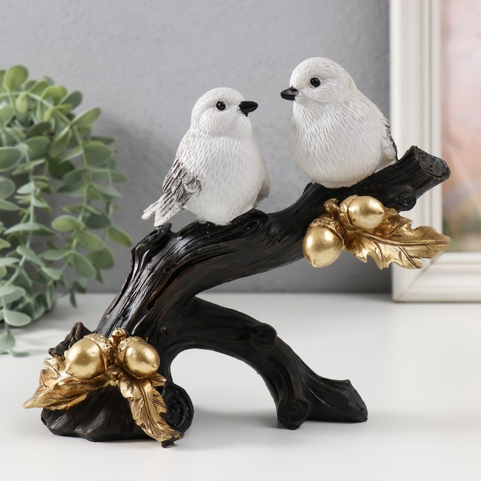 Фигурка полистоун «Две белые птицы на ветке с желудями», 20×8×18 см