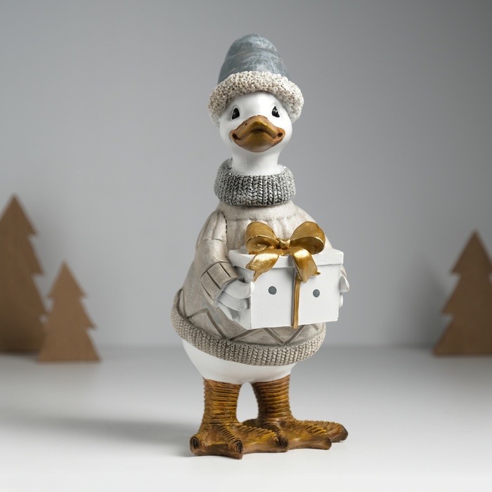 Фигурка полистоун «Гусь в бежевом свитере, с подарком», 9.5×12×22.5 см