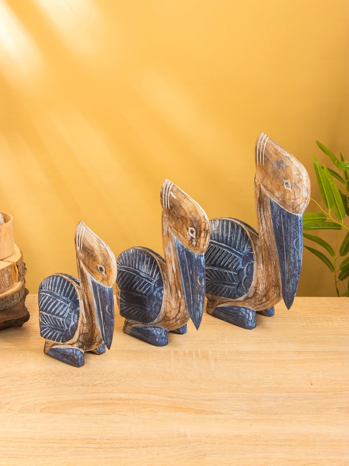 Набор сувенирный «Пеликаны», h=30 см, h=25 см, h=21 см, дерево, бежево-синий