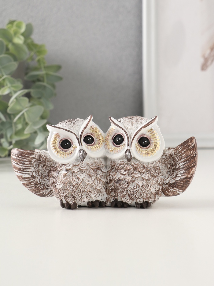 Фигурка полистоун «Совушки: объятия, с золотыми глазами», 6.5×13×3.5 см