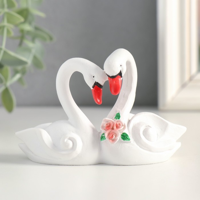 Фигурка полистоун «Два белых лебедя с розами», 3.2×9.5×6.2 см