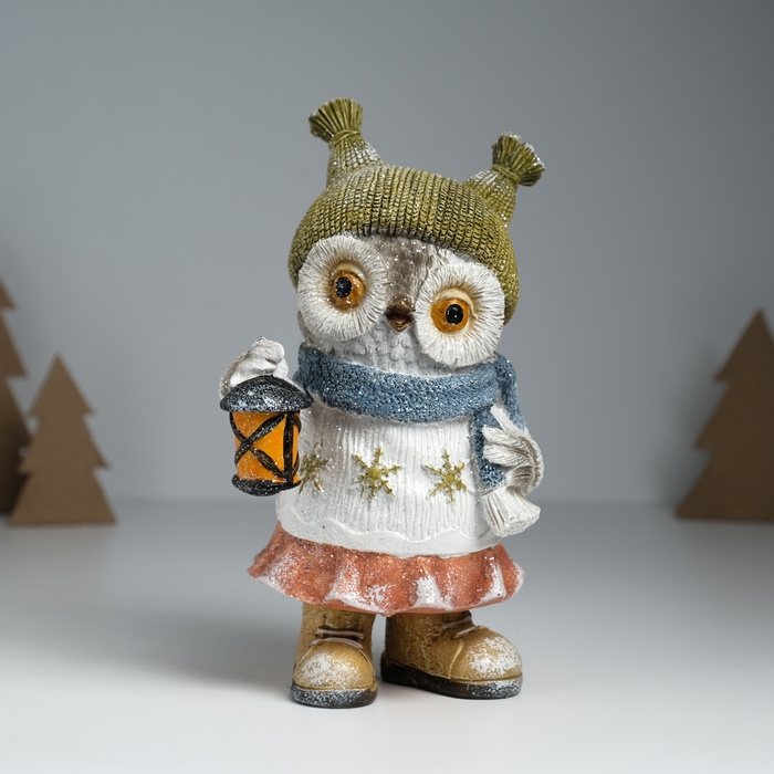 Фигурка полистоун «Совушка в свитере со снежинками, с фонариком», 11.6×8×19 см