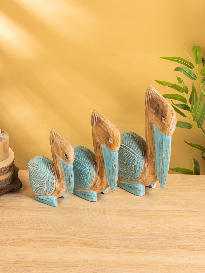 Набор сувенирный «Пеликаны», h=30 см, h=25 см, h=21 см, дерево, бежево-голубой