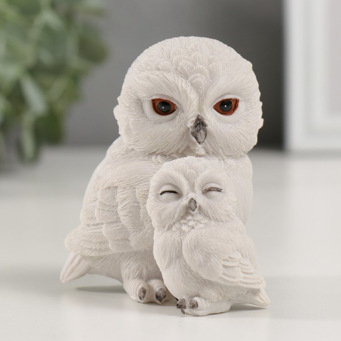 Фигурка полистоун «Белая сова с совёнком», 8×6×8.5 см