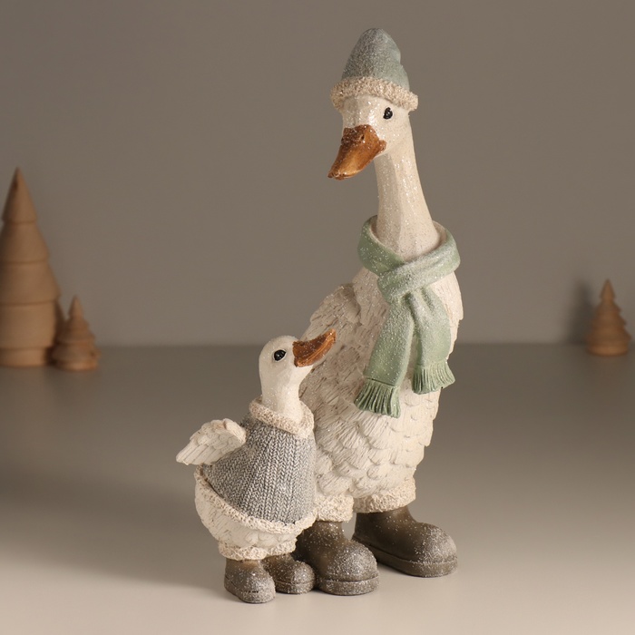 Фигурка полистоун «Гусь в длинном колпаке и шарфе, с гусёнком», 14.5×13.5×27.5 см