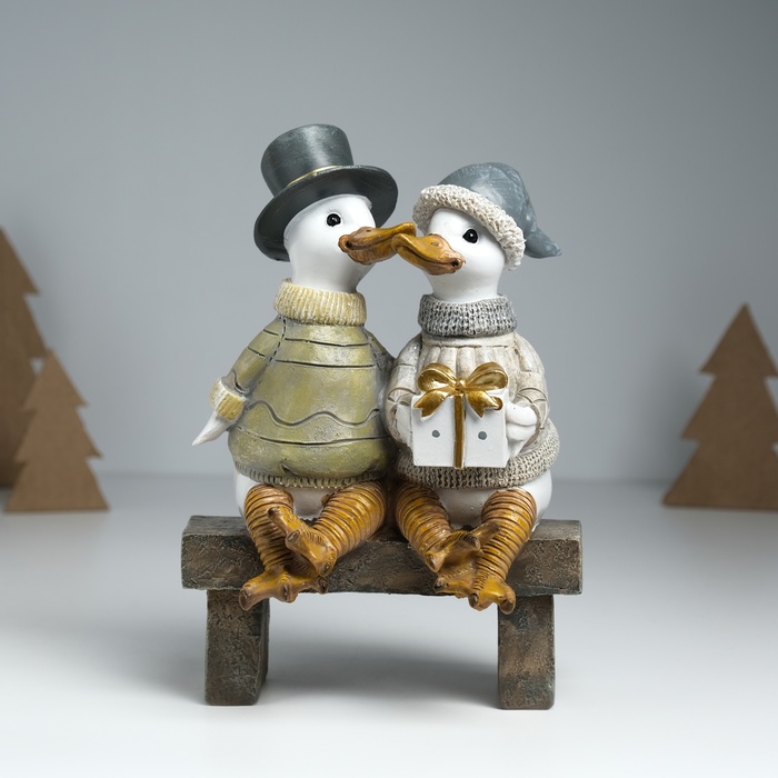 Фигурка полистоун «Гуси на скамейке - праздничный вечер», 15×10.5×20.5 см