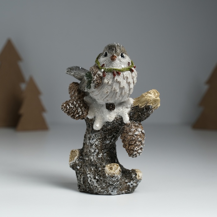 Фигурка полистоун «Воробышек в венке с ягодками и шишками на дереве», 10.5×7×13.5 см