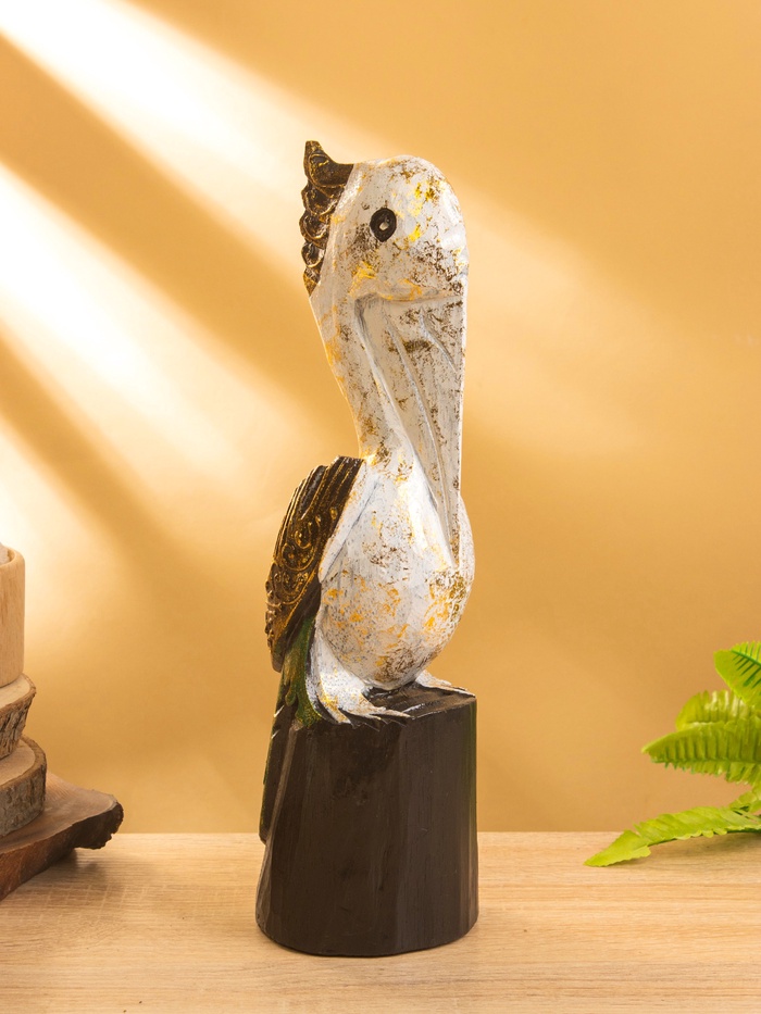 Сувенир интерьерный «Пеликан», 10×10×33 см, дерево, белый с золотом