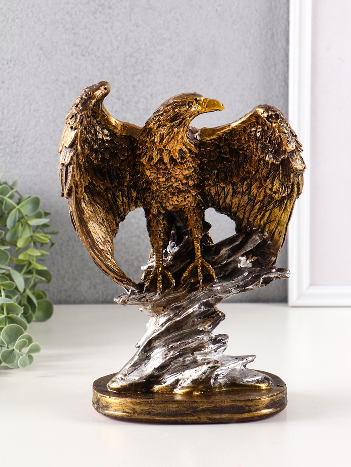 Фигурка полистоун «Орёл на камне», 24.5×18×11 см, бронза