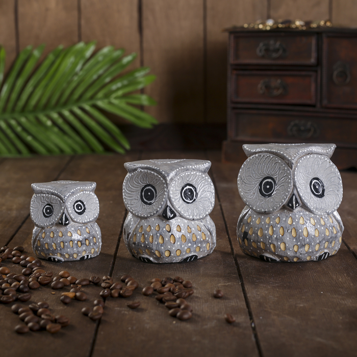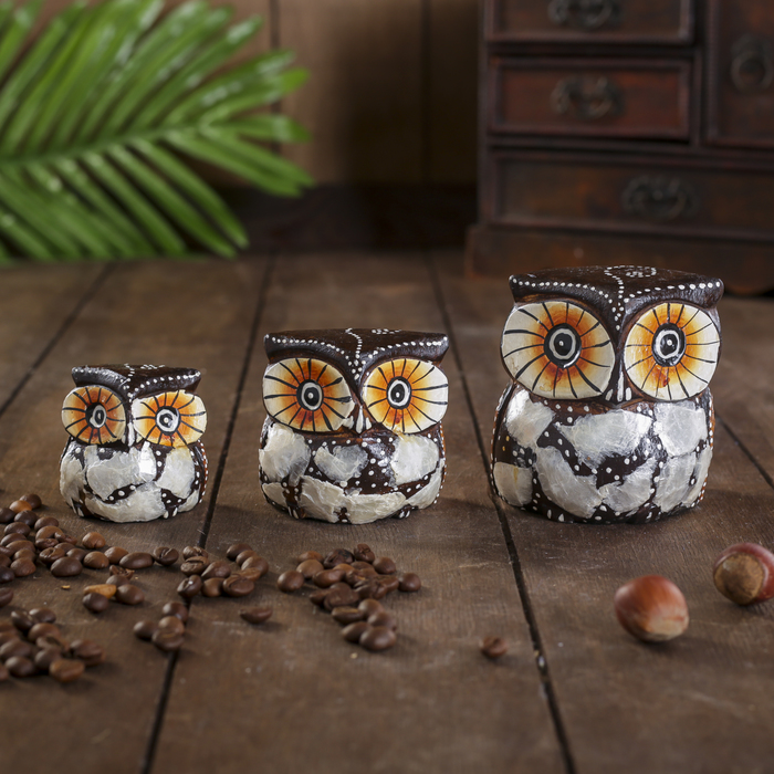 Сувенирный набор «Совы серые пятнистые», 6×19×8 см, дерево