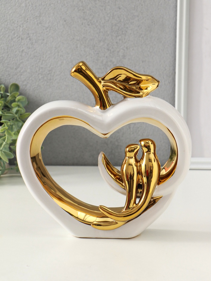 Фигура керамика «Две птички на яблоке», белый с золотом, 7×22×22.5 см