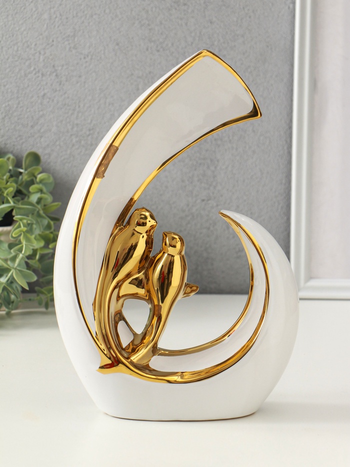 Фигура керамика «Две птички. Абстракция», белый с золотом, 8×20×29 см