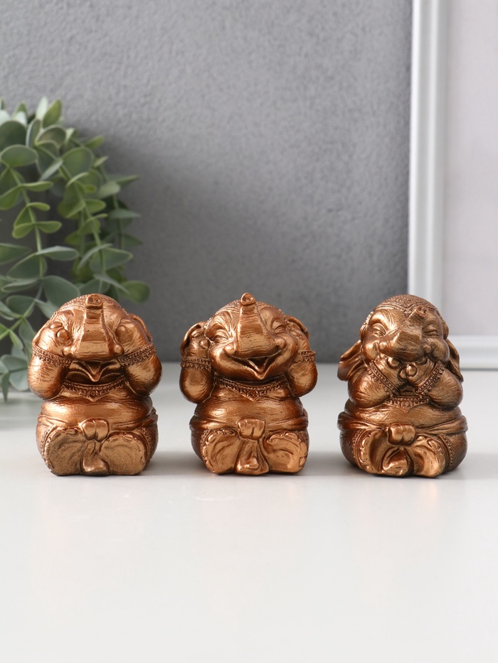 Набор фигурок «Слон ничего не вижу, не слышу, не говорю», 3 шт., бронза, 7 см