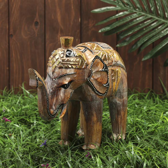 Фигурка полистоун «Слон в попоне с сапфирами», под дерево, 14×16×7.5 см